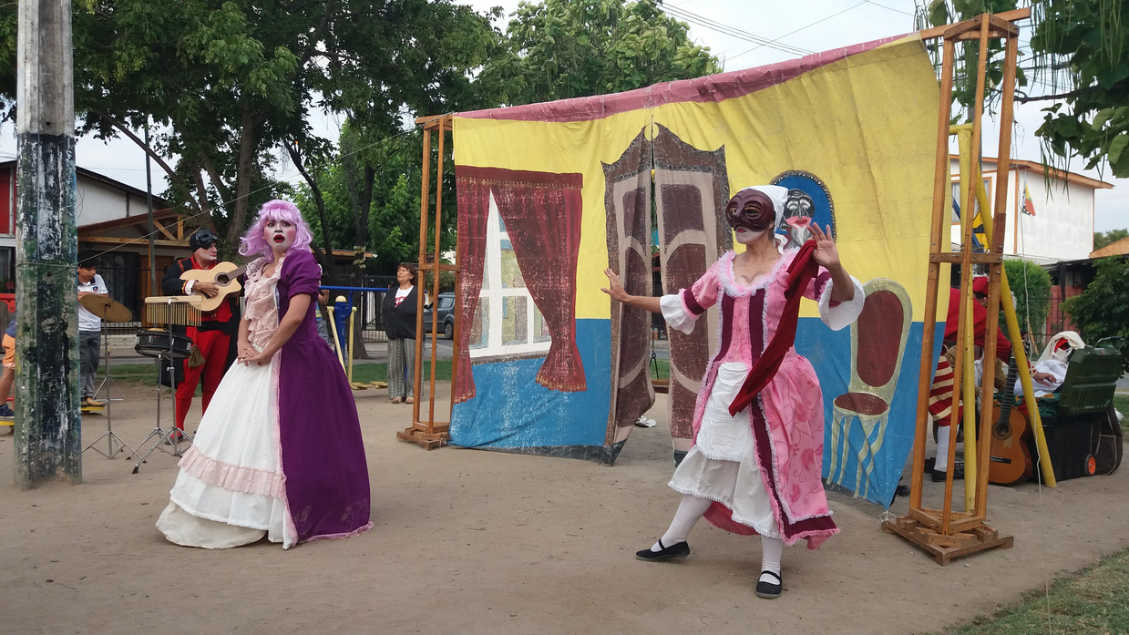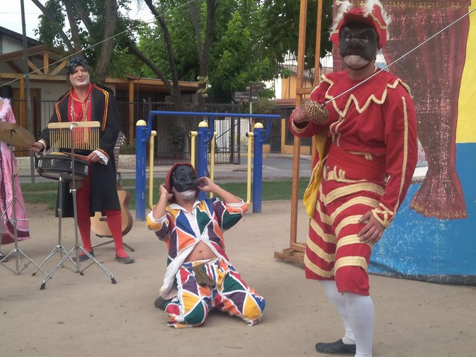 Durante el verano, y en colaboración con la compañía Teatro Pequeño Clan, presentamos en tres plazas de Maipú la obra "Casos de amor y otros demonios". Una creación colectiva basada en canovaccios clásicos de la comedia del arte.