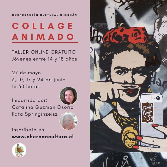 Taller gratuito dirigido a jóvenes entre 14 y 18 años, donde conocieron la historia y significado en tornos al collage y cómo crear una animación con recortes. Pudieron desarrollar sus ideas y aplicarlas en la edición de su propio collage animado.